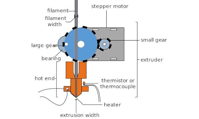 پرینترهای سه بعدی برای کار کردن به قطعهای به نام اکسترودر نیاز دارند. این قطعه وظیفه دارد تا میزانی کافی از فیلامنت را به هات اند (hot end) ارسال نماید. به زبان دیگر میتوان گفت که اکسترودر پرینتر سه بعدی، ارتباط مستقیمی با فرایند ذوب و بیرون آمدن مواد ذوب شده برای ساخت قطعه درخواست شده، دارد. بسیار دیده شده که افراد دو قطعه اکسترودر و هات اند را با یکدیگر اشتباه میگیرند. جالب است بدانید که این دو قطعه، کاملاً از نظر ظاهر و وظیفه با هم تفاوت دارند.